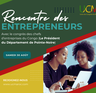 Nous avons l'honneur de vous informer qu'une rencontre significative sera organisée le samedi 30 août entre les entrepreneurs congolais résidant au Maroc et le CCEC, le Congrès des Chefs d'Entreprises du Congo. Cet événement sera marqué par la présence du président du département de Pointe-Noire.